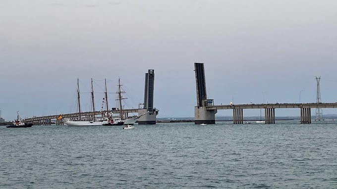 Pondremos rumbo el puente de la Constitución. Es un puente atirantado que cruza la bahía de Cádiz.